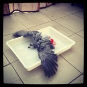 So after a couple of days he started talking, I will never forget that moment. We bought him a bigger parrot cage and he was very quickly adapted.