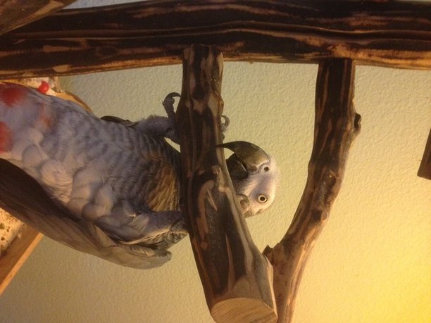 Pooka is just short of 12 years old. I got him under rather unusual circumstances. I got him from an online breeder in Texas, I lived in the state of Washington at the time. When I got him the breeder refused to tell me his age until I got the DNA and pedigree papers. Turns out the poor fellow was less than three months old and, contrary to what the breeder told me, the poor fellow hadn't even been fully weaned yet. I bumbled along as a first time bird owner, managed to get him some formula and hand fed him until he started eating solid foods. But some damage had been done - he's gotten a horrible separation anxiety that in the past decade I've not been able to get him through. His vet described him as "a very nervous little fellow". He screams for no apparent reason, and if we ignore his screams he just does it louder. I've tried everything - reinforcing the positive and ignoring the negative - but due to his extreme intelligence and his "OMG!" stubbornness he still screams. Daily and loudly. He's very addicted to my roommate. If given a chance will follow my roommate all over the house. If Kevin (the roommate) leaves his bedroom to use the bathroom and does NOT come into the living room, Pooka is aware and goes ballistic, screaming and shrieking his brains out. My only recourse is to put him back in his cage and cover him until he calms down and I dislike doing this (this could even be construed as "reinforcement" of the negative behavior). Pooka is not a very strong talker. He does talk - and has exhibited proof that he knows what he is saying (I came out of the bathroom once and he wasn't in sight; I called his name and this voice from the kitchen replied "What do you want??") but he hasn't added anything new to his lexicon in years. He loves to whistle and the three of us - myself, roommate, and Pooka - will carry on whistle conversations when we're in separate rooms. This often keeps the Pookster from screaming but not for long. I am aware he gets bored yet toys make him nervous. Any new toy put on is gym will keep him off his gym for days. Some toys he just never accepts. Recently I've given him dry corn on the cob - harvested off the puny stalks out back - and he LOVES them. Anyway...there's a truncated version of Pooka's history. Any suggestions would be much appreciated! Thanks! Daniel & Pooka