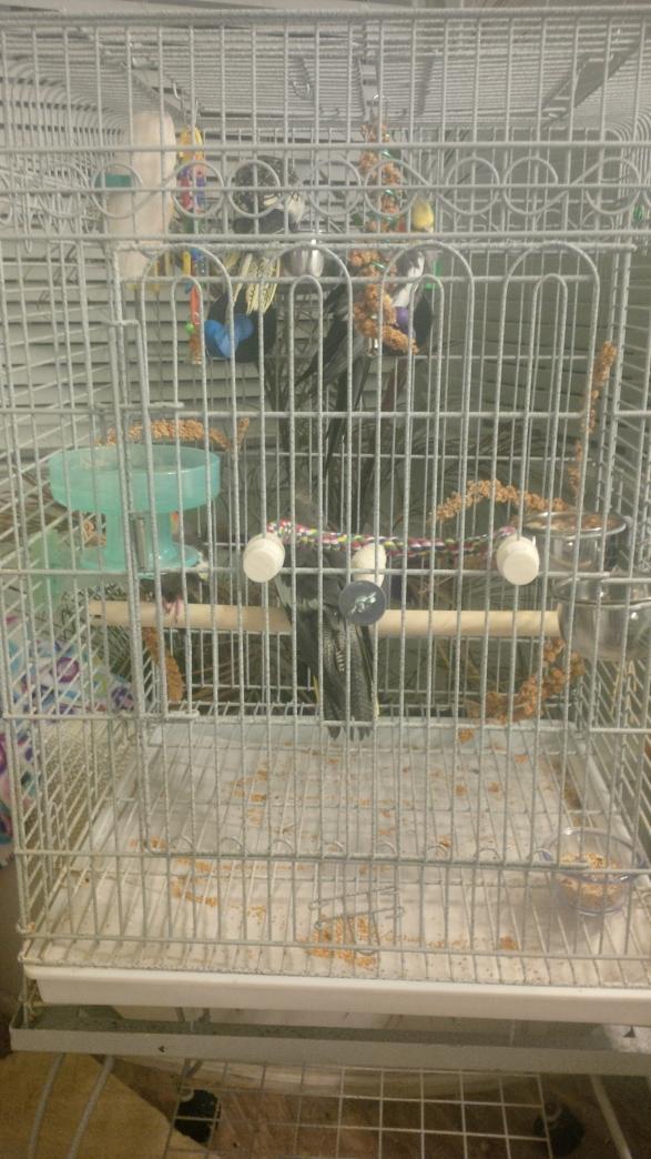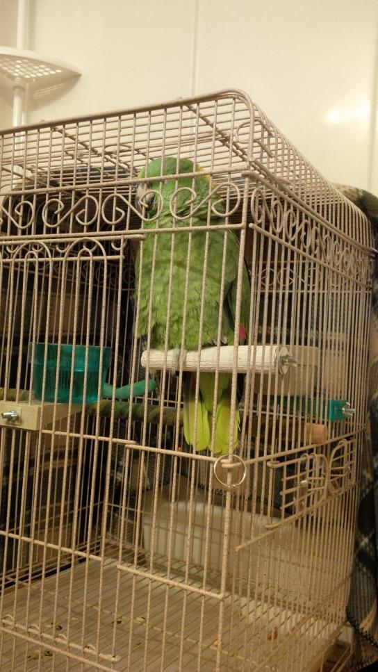 I am sorry I don't get here more than I do. My online time is short these days, caring for 64 birds. Here's a quick update. Jojo died the night before his vet appointment. He'd been very sweet and curious with me that day, and ate every bit of his breakfast and most of his dry food. At this time I was calling him a "she", and I hope he forgave me. The 'bump' was a hernia and it strangulated. He died while I was at work Tuesday night 3/3/15. We had a necropsy done because of risk to the other birds, and it was conclusive as to that being the cause of death. I bawled my eyes out. I hadn't known him long but we'd already started to make friends and he overcame his fear of me in just a couple days. We had him cremated and sent him back home to his momma. Honey, the Amazon is a sweetie. She has her moments, becoming violently vocal if she doesn't want to step up. She's hilarious. No bites yet. She does strike the cage bars when agitated but is much calmer when out. She was the first to come out of her cage. She loves the playroom and I get "cussed out" in Amazon upon trying to get her to go back. Molly is sweet and very skittish. She had some elevated BUN and creatnine on the first round of blood work but the recheck showed everything normalizing so I (and the vet) suspect dehydration and stress from the trip. She's doing very well. Casper is a little less skittish but still shy. Casper and Molly wouldn't touch toys at first but both are playing now, and both have finally come out of their cages in the playroom. And now - I found them in the playroom allopreening! I truly believe this is very good for them to have this kind of bond with each other! They are a REAL challenge to get back. Unlike Honey, they DO NOT step up at all so getting them back often involves lots of chasing around the room and eventual gentle toweling. I always make sure I mix being in the towel with some gentle touch and soothing words. They are beginning to calm down but last night it was over 2 hours getting them back. I won't give up, though. I went through this with Anya, and with Ariel the lovebird. Eventually they will learn to respond to a simple request to 'go back' and all will be well. Until then, I will be getting a little extra exercise. Molly had a great opportunity to bite last night and passed it up. I am very glad we made the decision to take them in. It means longer days and a lot more work but moments like this are the big payoff: https://www.youtube.com/watch?v=3czxqSN9HcM