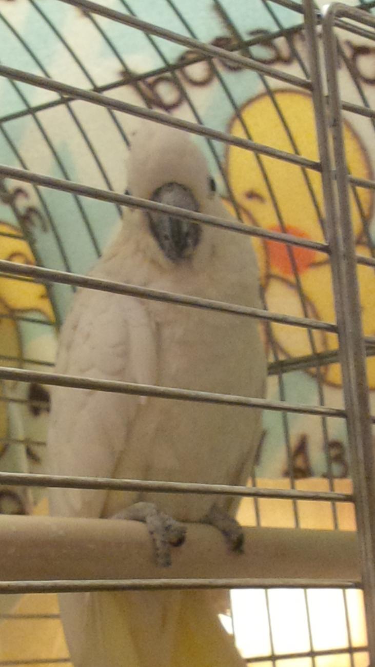 UPDATE: All four birds are in quarantine in the guest bathroom. All are doing surprisingly well. Indeed, at least three have bands indicating they are wild caught, however these birds are not as 'wild' as previously thought. They actually have all been very good. The amazon was getting a bit cage possessive with me, but only after I'd changed several things (added new bowls, added a toy) AND got the goffin upset by hanging a toy outside her (his?) cage to acclimate her (him?) to it. I suspect the amazon is a female because there is a definite attraction to my husband, which seems to work on every single female bird here. But I was hand feeding her apple and she was taking them very nicely from my fingertips, and so far all ten fingers are intact. The cockatoos are all afraid, but no more than any other bird on their first day here. They've been very good about letting me swap out perches and put in toys with the exception of the goffin. Here are some updated pictures: This is Honey, the amazon, sleeping very contentedly, on a perch right at the front of the cage. I was in a chair directly in front of the cage. You can see she's fluffed, got one foot up, and eyes closed. She was also beak grinding. This is Molly. She's a Lesser Sulfur-crested Cockatoo. She's very shy and moved to the opposite side of the cage when I put a toy in, but a few minutes later went over to check it out and chew on it. I think she's going to warm up quickly. This is Casper, the goffin. She was found as a lost pet and brought to a wildlife refuge that could not keep her, so the lady who surrendered her took her in and cared for her. She likes music and loves to dance but wanted nothing to do with the toy I offered her tonight. This is Jojo. She's afraid, but was not aggressive. She did act aggressive when I added a bowl for water (we are putting the 'locking crocks' in all the cages) but it turned out she wasn't trying to bite, she was trying to drink. She loves food, especially the dried papaya and banana chips in the mix. She dove right in her breakfast bowl as soon as I moved my hand away and cleaned it out! I was expecting much worse. Jojo has a vet appointment on Wednesday. We will see how that goes. I am praying that the protrusion below her abdomen is nothing serious.