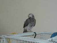 9. my wife and i have just adopted a timneh. she was given to us by my student. his family wanted another congo and decided to let me adopt her. she is a very pretty bird. we've had her for two weeeks now and we are seeing grea progress. the thing is, i think that she is territorial with her cage. she wont leave it. she will climb on top but wont climb down. to make matters worse, she runs backs inside when either one of us gets near. she recently began allowing me to place my hand inside without her screaming. she wont come to us. we get close when we give her grapes but that is all. is this bond/trust issue take a while? what is considered to be too long? can i use the toweling method to grab her, in hope that she realizes that we wont harm her? what about bathing her? i was told to just spritz her with warm water and allow her to air dry? i want to bath her and make fun out of it.....help us please!!! we are open to ay and all advice. please share. thank you two loving parents