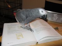 2. Silver is around 5. He really started talking a lot in the last year. When I got him (he was around 4), his only word was "Silver", but he could already dial/ring/answer the phone and was working on the andy griffith song...He now also starts saying a lot of stuff he must remember from before he came to stay with me (the bad words, "up-up", the meows etc...). We play a whistling/talking game every evening...I sit across the room from him and we take turns whistling/talking (he doesn't talk back, he is a little shy about talking in front of people).<br><br>Post edited by: Silver, at: 2007/09/06 22:17
