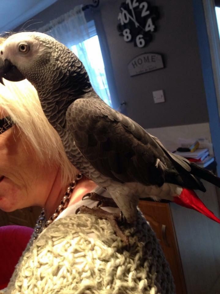 5. Hey everyone, my name is Cheryl I'm adopting a 17 month old cag we will be bringing him home next Saturday the 7/2/15, the owner has put in a lot of love & time in with this little dude but just cant look after him anymore, he is a beautiful boy and I can't wait to bring him home, we owned a cag when I was growing up, we took a 10 hour round trip a few weeks ago to go meet him & see if he liked us he wasn't to sure of new people this has got me worried as I would hate for him to start plucking or anything else, we really can't wait to being our beautiful feather baby home, and we hope that he will learn to love us as much as we already love him ❤️ I have attached a couple of pics of him below ❤️