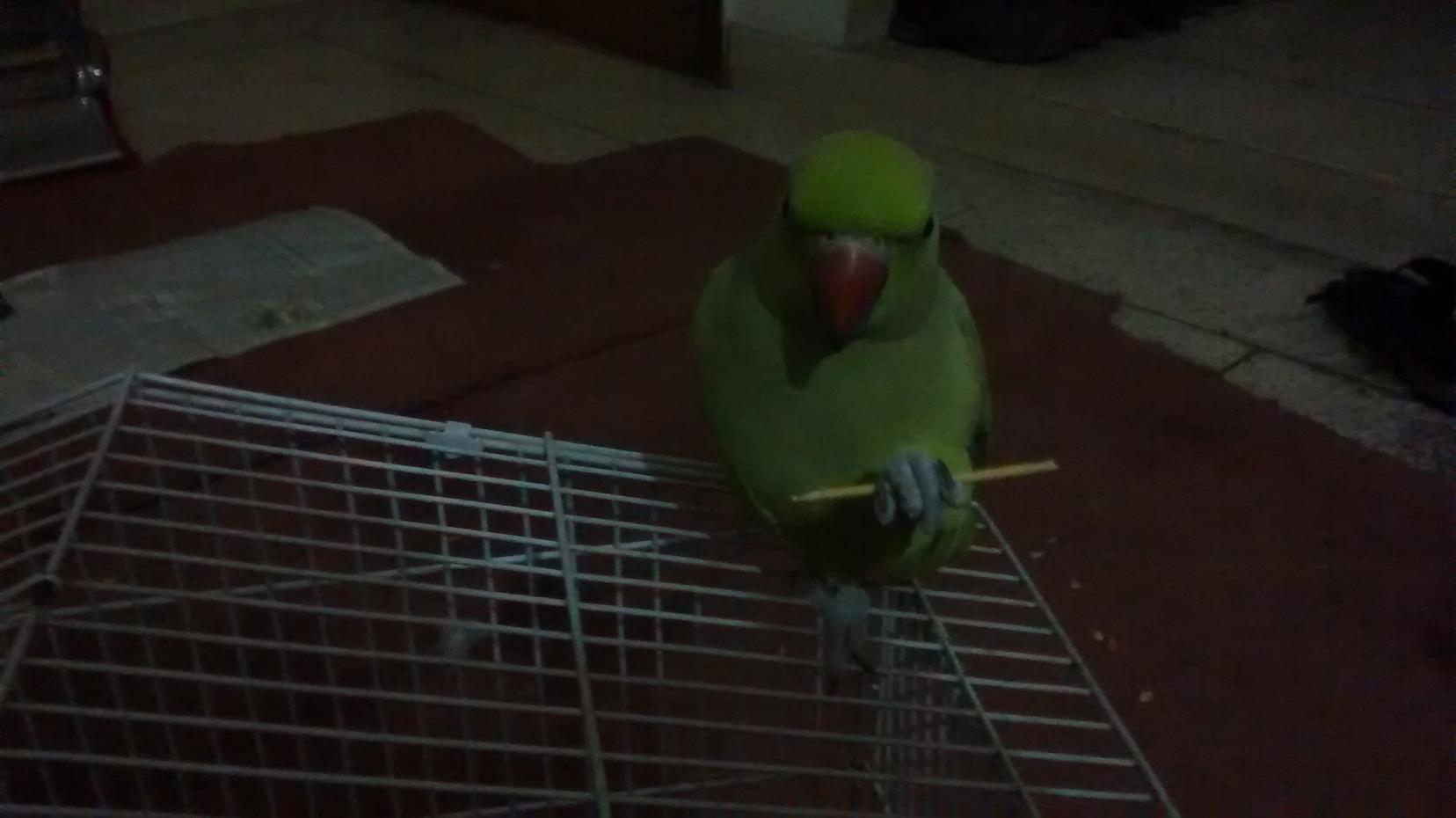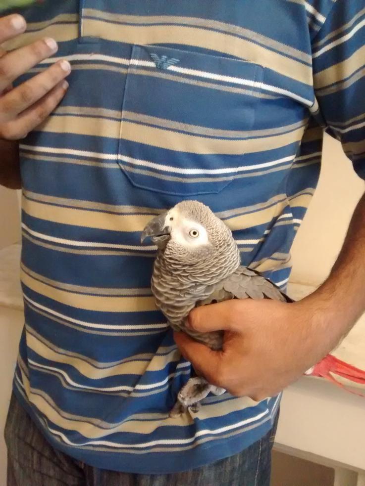 The Grey (named "Mithu" translated as "sweet") is 8 years old and fully tamed and talking as well. However I find the grey to be very sensitive to weather changes etc. Recently it has developed a behavior of breathing very heavy at night - during the day it is fine , playful and has its food as usual.