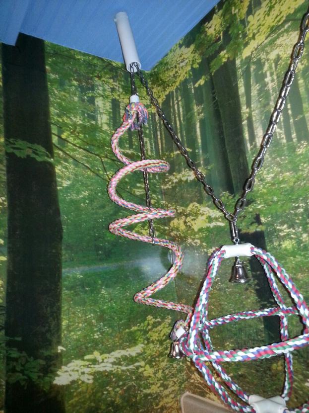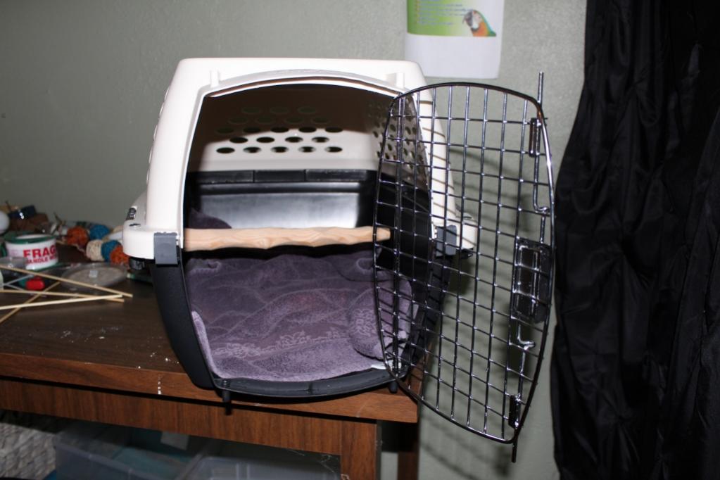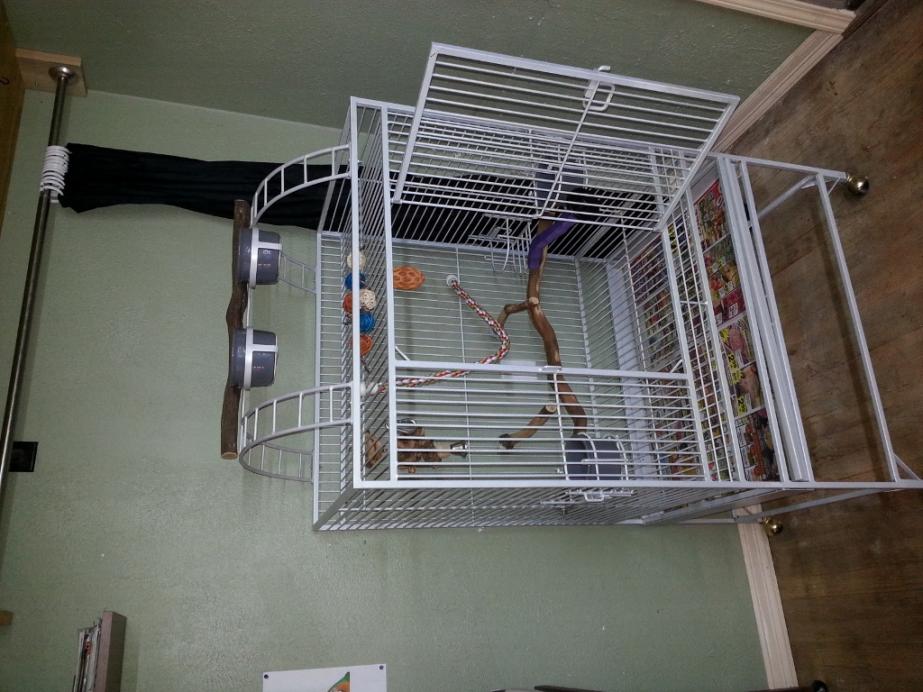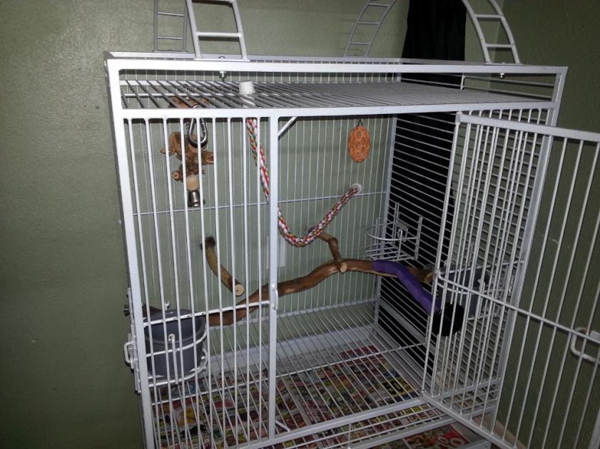 From what I hear from Lea in recent weeks, she is already used to climbing the bars and perches in a cage so I think she may be pretty steady on her feet already. I will put a towel on the bottom when we get her home this morning just in case. I have a loud stainless steel bell that I got on amazon that I will hang in the middle of her cage. The black shower curtain is big enough to cover the entire cage. The room lights are on a timer so bedtime will be fairly consistent every night. Thanks so much for the suggestions. We are only a couple hours away now!