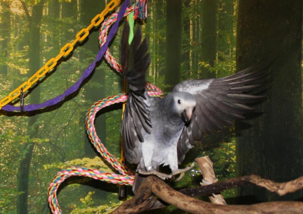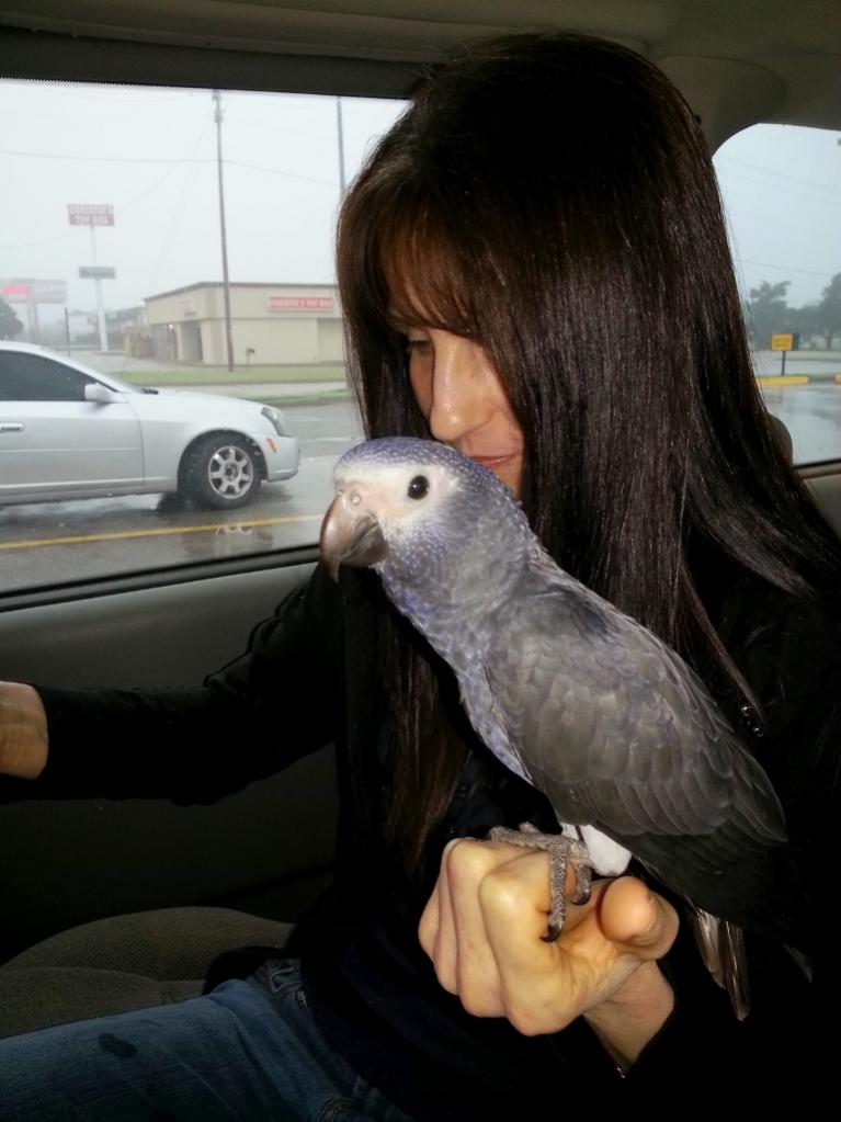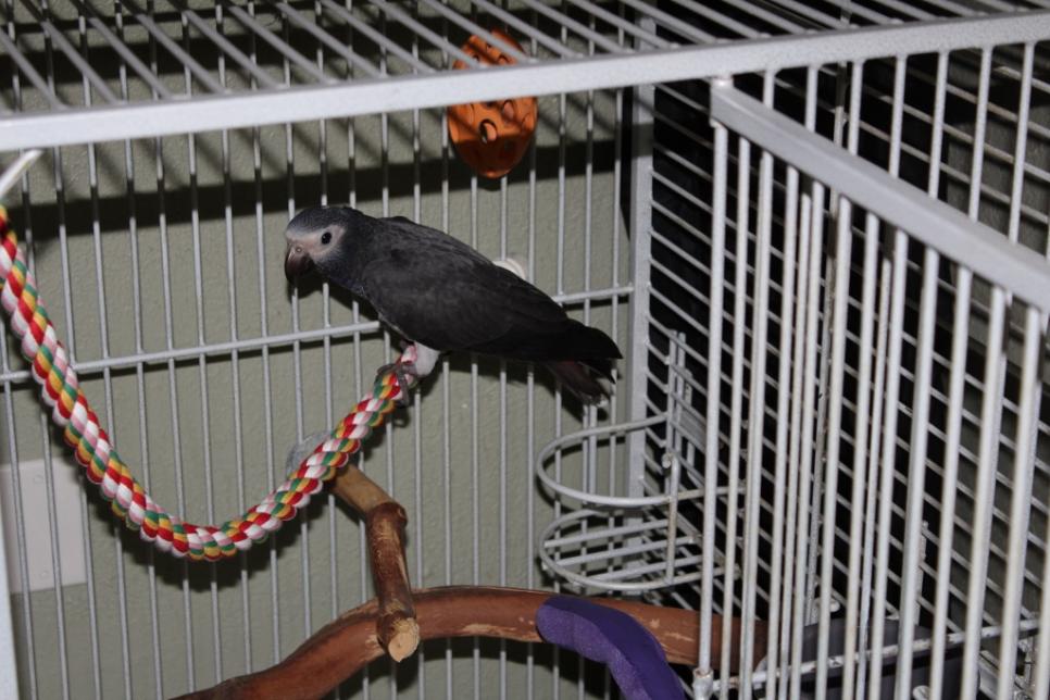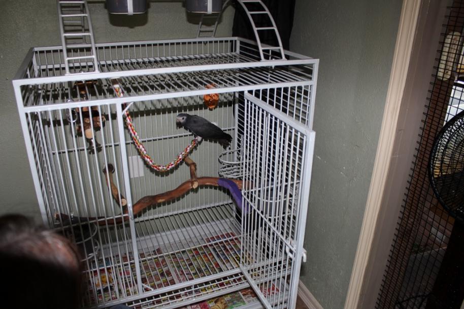 Its been a long wait but Zoe is finally home and in her cage! She is so sweet and could not be a more beautiful Timneh Grey. She loves head and beak scratches and took to my wife right away. She got pooped on a few minutes after meeting Zoe which made her feel special I'm sure