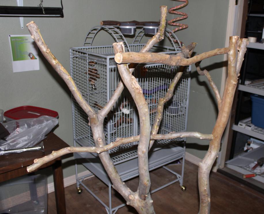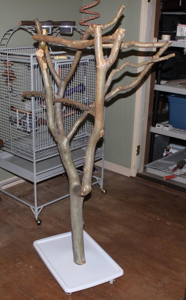 I am still working out what to add to the branches. I am thinking a stainless cup or 2 would be a good addition as well. I will add some screw eyes this weekend for hanging toys and other interesting things.