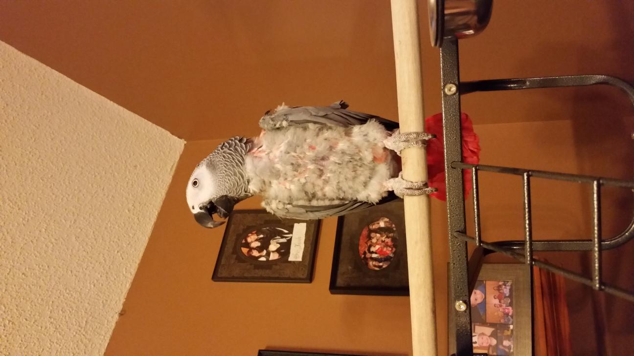 I'm Izzy. I am a first time grey mom to Toby, a 20 year old CAG. I adopted Toby from a woman who kept him in a small cage with cedar bedding, with 2 toys, 2 perches, and a seed only diet. (Direct quote from previous owner: "He likes Twizzlers, HiHos, bacon, cheese burger, and cheez its. But you can't give him too many cheez its because salt isn't good for birds. 0_o) I was told that Toby hadn't been handled in years, hadn't been out of his cage in years, hadn't seen a vet EVER, and started plucking his feathers a bit...understatement...due to the stress that the PO's Amazon caused him.