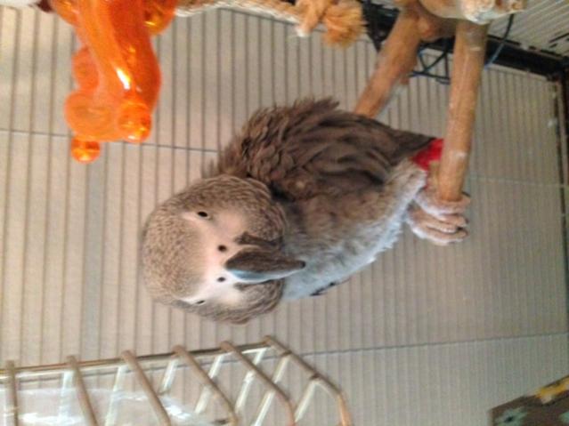 Yeah the fluffy toy is a hut and she scratched the fluff off the bottom, so I think she is done with the destruction stage. I touch the bottom sometimes to see if more of the plush is gone, but I just feel crumbs. I think she brings her pellets up there. Either that or when she snaps the pellets through her beak some pieces fling up into the hut. Her hut is just like this one: http://www.drsfostersmith.com/product/prod_display.cfm?pcatid=5687&cmpid=04cseYY&gclid=CjwKEAjw652_BRDfkebVrdOGkDISJAD0Q2Rusqllf_nWSR3edVmgdtgc8eb_C1lxgvJzaRPjzZsyDhoCRGnw_wcB but bigger and has a ugly design on the outside. I put ribbons on the outside of her hut so she would play with those instead of destroying her hut, but it seems that her ribbon stage is over. It seems that Korra caught on though and likes threading ribbon through her beak (but not eating it). I didn't get her a sea grass hut because I was worried that her talons would get stuck. She got her toe stuck in a bell yesterday, and I specifically got a big bell so that wouldn't happen. I guess like children they will get hurt one way or another. :confused: She got into a super cranky stage less than a week ago and would even bite the cage when I passed. When I changed her toy or gave her food she would try to find a way to bite me. But I put my hand in the other day and she put her head down for cheek rubs and neck tickles. I'm not sure what was going on (maybe molting) but I'm glad it is over. She has been very silly though since the day she found me and loves her special toys and being on my head. ^^
