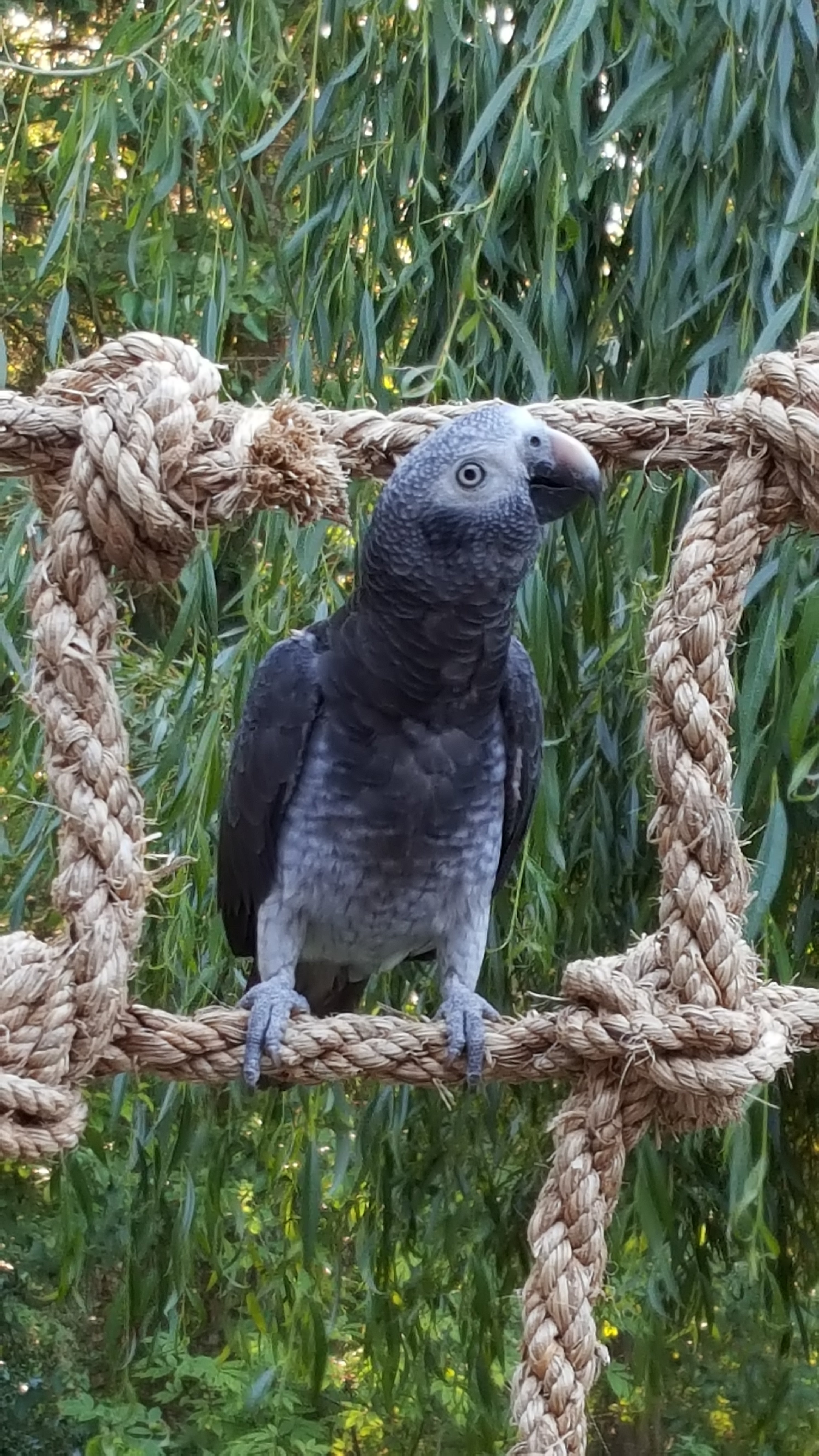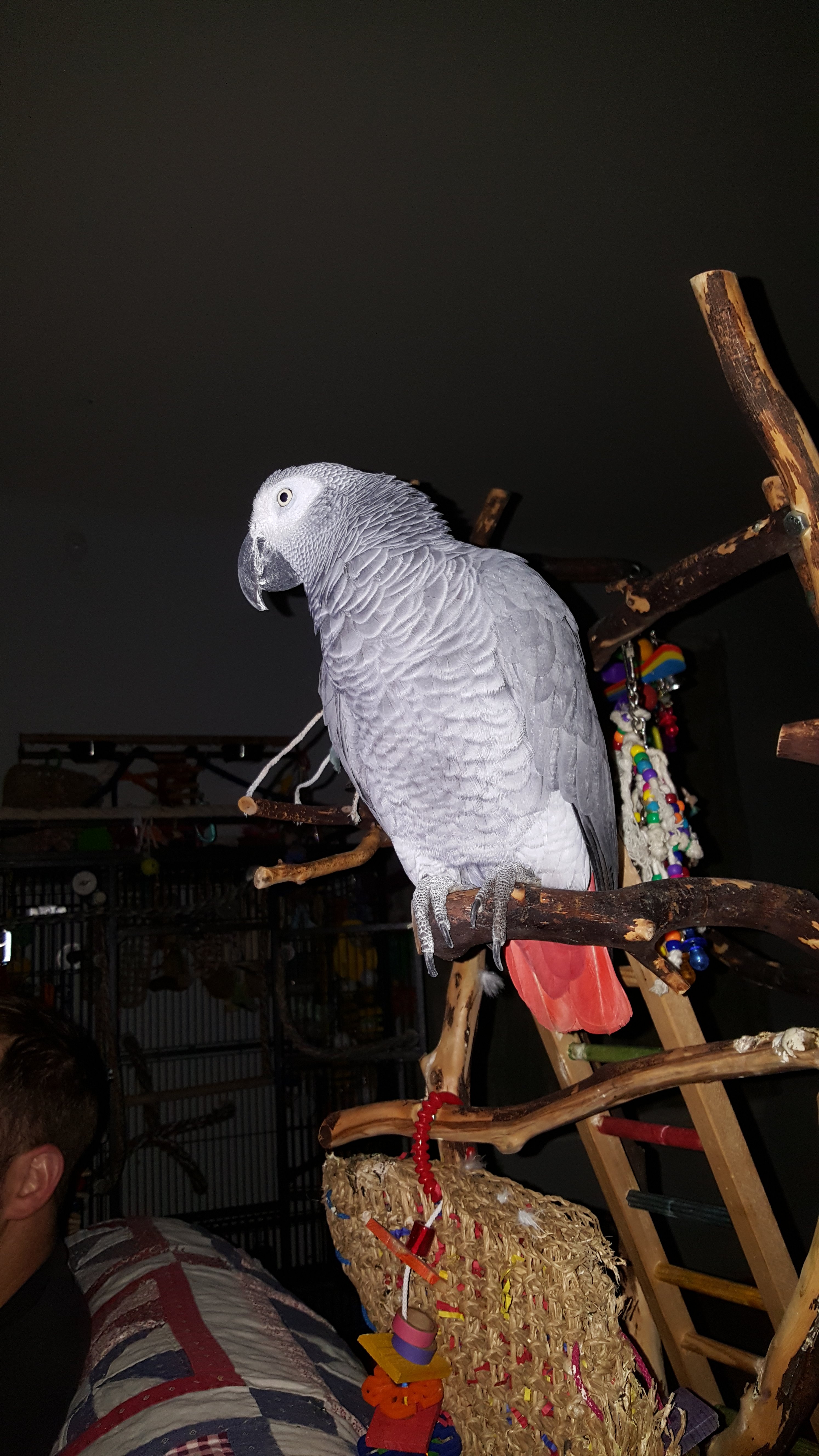 Hey guys, long time since i posted, sorry. So i never did find out what creech's band numbers and letters meant, guess it doesn't matter right. He is doing pretty good from what i can tell. His beak is it's normal color now, he's growing in new feathers, looks really good. He loves bananas and peanuts and peanut butter, his favorites, in small quanities. His eyes are clear but he is still a bit blind, you can just tell by the way he moves around and his pupils are not round. There are edges around his pupils, weird! Hopefully creech will be flying by summer, he really wants to fly. For an old guy he's doing amazingly well.