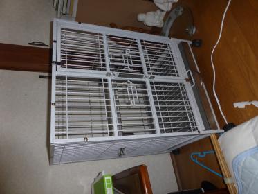 She hasn't used the big cage yet. Which is downstairs. She seems happy with her tree and the small cage for drinking and eating and sleeping. Also destroying toys...lol So she is close to us all in the bedroom. She is vocalizing much more day by day.