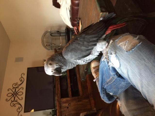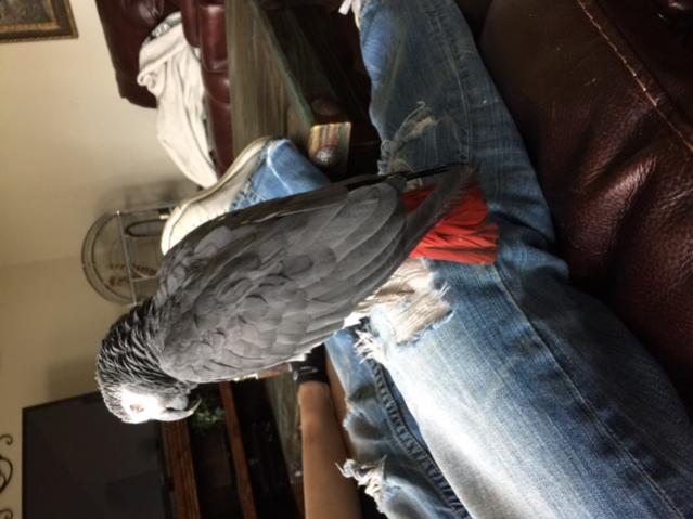 The lady told us that she acquired Maggie from a feed store which sometimes has parrots for sale. I know this particular store and know they do carry birds, because it's the same feed store that I always used to buy hay, horse grain and some tack from for my horses. I never saw anything like a grey there though. They usually had parakeets, cockatiels and an occasional Amazon or conure. She said Maggie was hatched April 23rd of 2015. And that she got her from there in October.