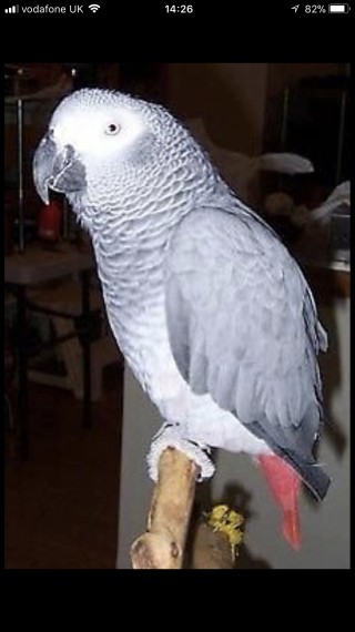 African grey parrot. Well looked after and loved, talks a lot, plays, and enjoys a pat on head and being held on the hand and shoulder. Unfortunately mum is very unwell and not able to look after it any longer. Sale includes a large cage, many toys, 3 stainless steal tubs fir food/water and a large box of food. Says 09 birth on the foot tag. A friendly bird. Sad to see it go, would have kept myself but my house is too small. Reluctant sale. Sensible offers will be considered.