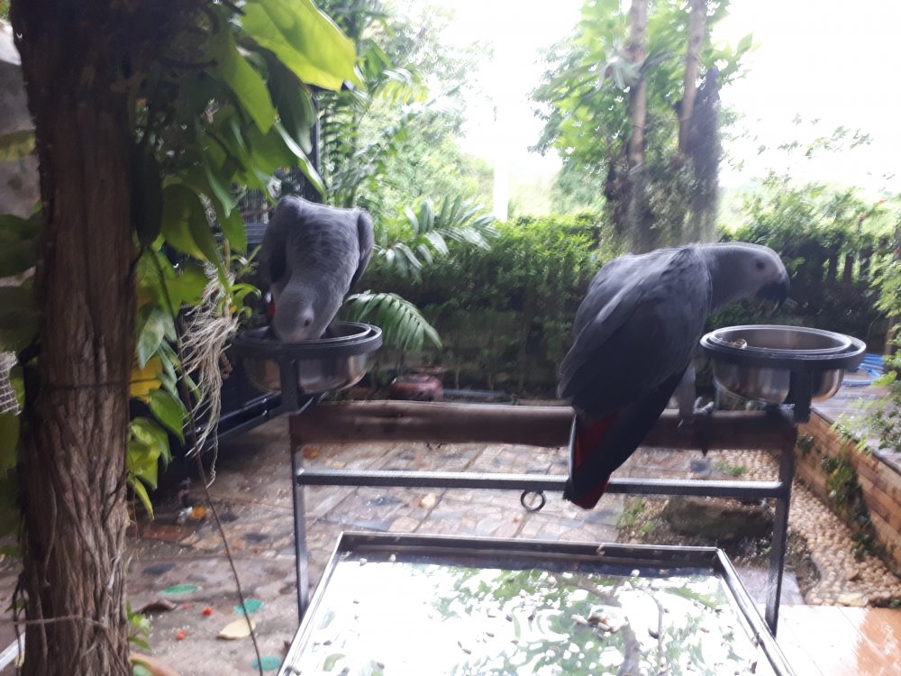 Hi, My name is Bob. I live in Thailand about 100 km southwest of Bangkok. I am an American and my wife is Thai who teaches English to grades 9 to 12. We have 4 Sun Conures and just recently got to African Grays. I join this forum to learn about the taken care of African Gray parrots. I originally had two Sun Conures and 8 months ago they became the parents of two children. I will try to attach a photo if I figure out how.