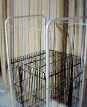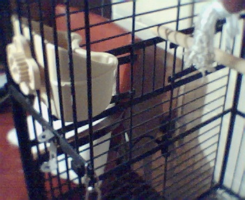 I have this cage and stand I inherited with Dorian. It's actually from a retail display meant to hold 2 cages. I have the cage on the bottom because I don't feel it's stable enough on the top. There are a couple pictures attached. Here are my questions. 1. Is this cage large enough for a sleep cage, or to take Dorian out with me now and then this summer while I garden? It's 17 1/2" x 17 1/2 " x 28"H 2. The metal bars of the stand have a few chipped spots. I cleaned it off well. Could I spray paint it with pet safe metal paint (this spring when it warms up), or I thought I could wrap the bars with sisal rope. Then would it be safe for Dorian to climb on it? 3. Dorian doesn't have a play gym. Could I make the upper part of the stand into a gym by wrapping it and adding ladders & stuff (here's where I need the creative help.) Thanks in advance for your input!