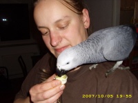 23. hi, i am a new african grey owner. I have had an interest in these birds for years now and I have been reading alot abaut them, with the hope in one day owning one. That day came two days ago. My husband sent me to the store because he had off and we had a holyday her but not in the next state, where I went. All I wanted to buy was sticks and toys for the new cage that I had ordered on the internet for the parakeets that I got from a neighbor a few days before that. I always look at the animals and saw "churchhill" (named by my husband). Looked at the cages if they had something that I found appropiate in size. I kind of prefer bigger rather than smaller. Talking to the salesperson, there was just one problem how to get the cage home since we don't own a car. Well it would not have fitted in a car anyways. Well, they had a driver and a big truck, which they provided for free. A short phonecall to my husband and I bought everything that I needed for the beginning. The cage was in parts and I had to put it together, what a act. Unfortunaltely I have to it again next week when the cage for the parakeets comes. With on advantage, since it is the same brand I kind of know not to go after the instuctions and that I have to think. Well now I am very confused since german websites have different onformation on these birds than american websites. I guess I just have to sort though everything and try to use common sense. When I am at home "he" is outside the cage and roams the apartment. He ( I just call it he because there was no genderdetermintion done) and I sont really care since I am not looking to breed. Today I will go to a store to buy more toys, I am looking for toys to put food inside so he has to figure out how to get it. However I am a little dissapointed how easy it was to buy the bird. The woman didnt ask abaut any knowledge, nothing. All I had to do was write my name and adress on a piece of paper, never even asked for ID. Not that the bird is not in good hands but she should have suggested that I go home with the cage first and come back the next day for the bird. But nothing, it was just like buying a package of cheese at the store. But I will do my best, and I got to go now because the birds want theis breakfast.