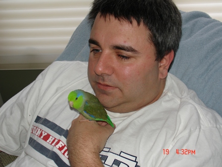 Also, we are test driving a little Picific Parrotlet. He is 2 years old and is a rehome. he doesn't know how to step up and is pretty flighty. We are going to work with him and see if we can settle him down a little. His name is Tiny. Maui is still #1 though. The little guy is for the kids. My daughters love him.