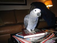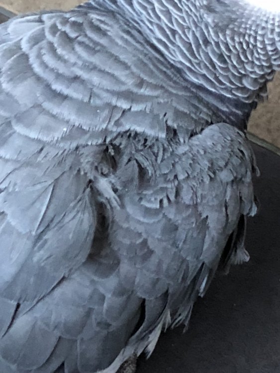 I have a question about my AF. I recently went away and left her with my mom while I was traveling. I forgot to mention to my Mom about the possibility of night thrashes. When I returned I noticed a bare pink spot just by her right wine bone and asked my mom about a fall and she confirmed that she fell one night while she was asleep and heard a noise from the cage. I've kept my eye on it and it looks like it is healing, however, the feathers look like a dark grey (almost like it had too much oil on it) and she won't let me look too closely at it. She is not a picker, but one never knows what can drive them there so I am a bit concerned. Should I take her to the doctor or wait to see what happens?
