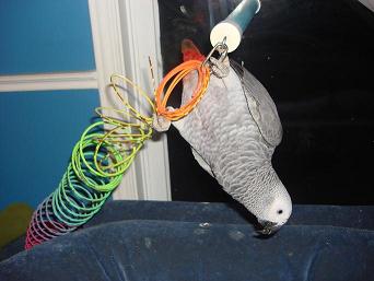 Also, Ana looks really gorgeous, really nice plumage! I like that toy - we have the same one but Zeus hates it.
