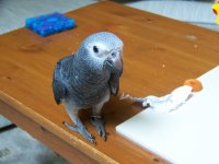 4. hello all, I'm really in need of some advise. My Timneh Monte is about 6 months old now, and for the first few months he was a perfect little angel, but for the last month or so whenever he's out all he does is squawk. He rarely touches any of his toys anymore, just basicaly squats down low and squawks non stop. I've tried to distract him with toys and games, but nothing seems to work. He always seems to just want to sit on my lap and get snuggled, but I wanna be careful to not over do it. I'm really getting pretty stressed out about this, because it's getting to the point where bringing him out is just painful, and everyone I live with is ready to kill me. Any help would be GREATLY appreciated, or if anyone knows of a good behaviorist in Ontario (around the Guelph/Kitchener area specificaly) would also help.