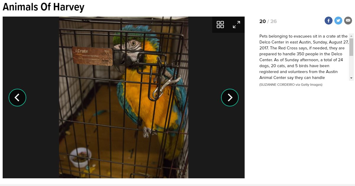 Think I think I found the B&G I was worried about at the Delco Center in East Austin (slide #20). I originally saw a few seconds of a man w/a B&G being loaded into a boat. Then a few day later a totally different evacuation piece had a split second of wings spreading, far behind a reporter's head that I just felt like was them. Sounds a little obsessive I guess, but I've been thinking about them ever since. Wish they'd found a more comfortable place to land. But real glad they're apparently safe & sound. http://www.huffingtonpost.com/entry/harvey-wild-animals_us_59a7102ee4b0a8d14572bd50?slideshow=true#gallery/59a7446ae4b010ca289a197a/0