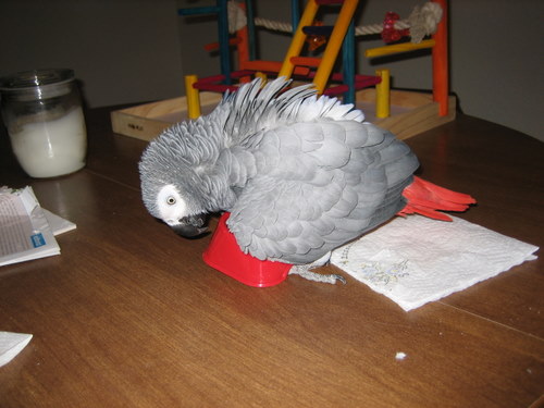 Hi, my name is Mike, and I recently purchased a 10 year old Congo Grey named Rascal. The breeder said he'd bought her from a couple going through a divorce and moving, and he was going to have her as a breeding bird, but she turned out to not have any interest in the males he had, so here we are.