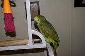 Ok, I trying the picture again, hopefully, it will work. My family and I just got the grey today. It's four years old and it's last owner die, suddenly, and the family didn't want the bird and they were selling the bird, so, we brought him. his name is chad. Then we have an 8 month old green winged macaw name, Sammie, who is the sweetist bird, he can wave and drop a key in a cup. And just love's attention, if I let him, He'd just hang out on my arm all day, but he heavy. We have a 4 month old Blue and gold macaw, Olivia, she a bit more shy, and truth be told, like my sister more than me, but still a very good bird. And now are last bird, Elliot, is a blue front Amazon. He about a year old, and love kiss and will come to you arm but hate to be pet at the moment. We think it's becoue he was caged most of the time at the pet store we got him but he doing better about the petting since we got him. Well, that's are bird.