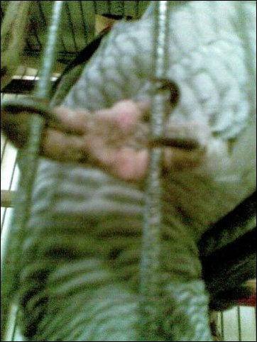 My parrot has sore looking patches on the padding of one of her feet.. They started of as just one little pink mark and gradually started to cover the rest of the padding on that foot. I took her to the vets (avian) a few weeks ago and she suggested a ointment for it, i have been using this stuff for nearly two weeks now, and have saw no difference. I tried to take a pic of her foot today so i could show you, but the best i could do is the one that i have attached, i'll try again later to get a better picture and post when i can. In the picture im posting you can sort of make out the reddness. She lets us touch it, and it causes her no pain, but im still worried about it! Any help greatly apreciated x