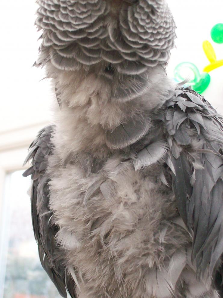 Hi Judygram thanks for the reply. There hasn't been any thing else that has changed as far as i know. He was sitting looking out of front window at the time and flew off and clipped his wing on the door frame. he usually sits there on his perch, and dosn't get spooked to easy so can't really say this may be a cause. as regards to bathing we do mist him with the bottle but having read your threads think we might be doing it from to far away. I will get closer and try to get him as wet as possible. He does go into the ensuite when we shower and sits on the shower door but wont let us take him inside .he is as chatty as normal and he has pulled all of the broken feather off now, i will just have to monitor what he does with the rest of his feathers. when you feel his chest it's all prickly so i can tell that he has chewed the feathers there, but he hasn't actually pulled any out... he isn't bald...kust very scraggly lol . I will continue with the spraying and keep an eye one him thanks again di