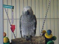 well montys settled down in his sleep cage in our bedroom and is getting a couple extra hours sleep each night now which should be good for him... however:unsure: i took him to the vets again(she said to return in after 2 wks)she now thinks he might be plucking as the feathers he's losing are from different parts of his body and they usally lose a few feathers from one place then a few from another in a systematic fashion,when moulting, she says.. but she is also doing feather and stool tests at the lab, one for any sign of chewing on the feathers and the other for chlamdyia:unsure: :blink: i am unsure, although read a little of what this is??is it treatable? will he be ok?? he has lost weight again and i cant seem to get him to eat anything, he justs want to play all the time:unsure: do your greys sit and eat a full meal?? monty will have a 1/4 round toast then leave the rest.. then 1 piece of melon out of his fresh fruits and leave the rest..he will eat a sugar snap pea out of his salad bowls and leave the rest...eat a few carrots out of his vegg dinner and not touch anything else.. he has access to pelletts all day( harrisons&keytee rainbow) which he will nibble from time to time and in his bowl on his java tree has nut and raisins ..he also has hanging granola bars(x2) and 2 foraging boxes full of treats.. but the amount of food which he eats is really worring me:( any ideas please??? i have done birdie bread.. wont touch it i have bought nutri berries.. wont touch them he munches on 2-3 palm nuts a day but just seem to sling the flesh and chew for ages on the nut in the middle :blink: please help!! he doesnt eat any poeple food really either, although we're eating he just likes to sit on the edge of our tray and have a taste but doesnt eat anything.. he wont eat egg.. or rice.. i am really stuck as what to do next.. sorry for the long message:blink: :unsure: