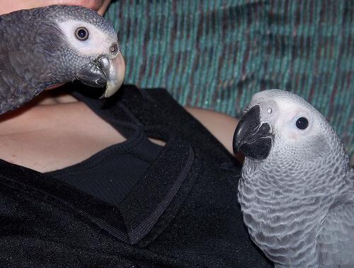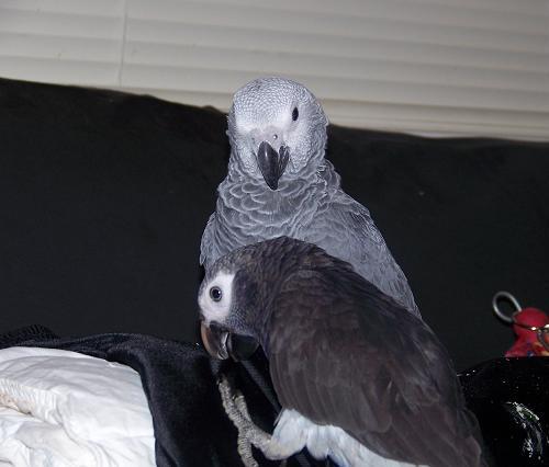 Well I'm pretty excited. I'm pickin up my 3 month old male Cameroon Grey tommorrow morning. Gotta drive down to Salinas. My female Timneh turns 1 year next month, I hope she is coo with him, heh heh. I've had his cage setup for 2 months next to hers, so I hopefully that helps a little bit. I bet she's still gonna wig out at first. Can't wait, hahaha.