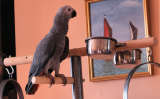 we let him fly all over the house and the computer room is a sort of Avery, and wont keep of the furniture, he is lots of fun and we love him to bits dusty lets us both stroke him he dos not bite any more