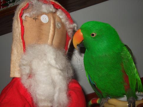 When Tigger came he mainly just made some noises. He was saying Be Be Be Be over and over again:S Then day by day he opened up. He says Hello, Woody (which I have no idea who woody is:lol: ) Then he amazed me by saying this phrase "They call him Tigger, Tigger, King of the Jungle" all in one sentence.:woohoo: and emphasis on the gle or gull sound. JunGUUUULLLLLLL. I about fell out of my chair when that happened. He says Good Baby, Good Baby Boy, Pretty Pretty Baby, Whatcha doin, Whatcha doin here. I have taught him to sing "I'm a bird" but he pronounces I'm a bir" or gets confused and sings I'm a Gull. :laugh: So funny. He picked up "Step Up" I also taught him to say "Mama's Baby Boy". there might be a few more I'm forgetting but those are the main ones. I got him last September or October and he caught on to the new things I taught him pretty fast. I really should spend some more time teaching him new things. I seen his beak in the photos. That is about how long Tiggers is right now, too. I think it's ok but I am already thinking that I need to have Tiggers beak trimmed pretty soon. He is the only flock member I have grows the beak so fast or needs trimming. I last had it trimmed in November or December I think. His nails grow fast too and get so darn pointy and sharp! I even have some cement perches as well as wood in his cage. Here is a picture of Tigger around Christmas time and there is a good view of his beak. I think that is the perfect lenght of the top beak but it has grown quite a bit since that picture. <br><br>Post edited by: BaxtersMom, at: 2009/04/26 15:55