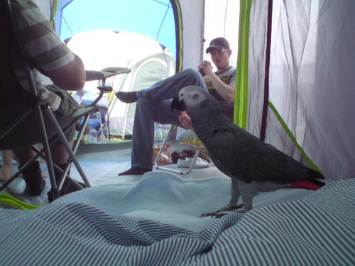 well me and tigerlily have just come back from camping in padstow, cornwall (uk) and thought i'd share the pics. the 1st night i doubt tigerlily slept cause it didn't stop raining and i realised the next night that i needed to remove her toy from the cage and raise her perch so she was higher up to sleep. apart from that we both had a GREAT time. tigerlily loved her adventure pack and chatted away in it and turned many an eye<br><br>Post edited by: Tigerlily, at: 2009/08/09 17:04