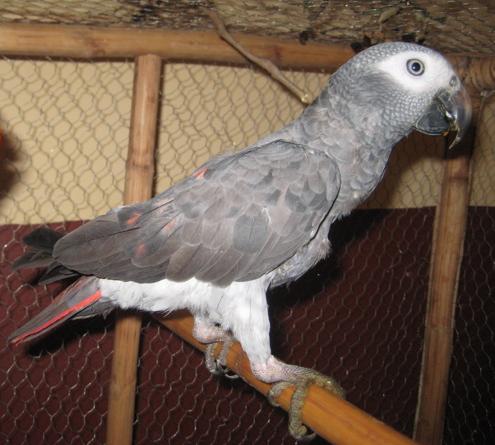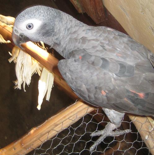 Hello everyone! My husband and I are Peace Corps volunteers in Guinea, West Africa and just got a Timneh African Grey this week. We were told that he is 5 or 6 months old. We have no way of verifying this, but his eyes are still pretty dark with a little blue. We don't know if he is really male, but decided to call it 'him' for simplicity sake. We still haven't decided on a name yet either, so suggestions are needed! Any suggestions for how to socialize him and gain his trust would be appreciated too. We got him from a guy who had him in a small cage with a ton of conures and 2 other greys. They were all being fed just corn kernals. The poor fella has had a rough life up until now, so he is justifiably cautious and scared. We're trying to be patient with him and let him trust us, but we're going to have to earn his trust the hard way. It also doesn't help that he is in a tiny cage right now. As soon as we get back to our village, we'll have a carpenter build us a nice big one. Also, any suggestions on how to get him eating a balanced diet would be great as well. We definitely don't have the option of pellets here. It's hard enough for US to eat a balanced diet half the time here, let alone a bird! Luckily the markets here are great with fresh natural foods... I just hope he's not picky or difficult to switch. Anyway, I don't have internet access often here, but will be in the capital for a few more days. I'd love to hear from some of you!