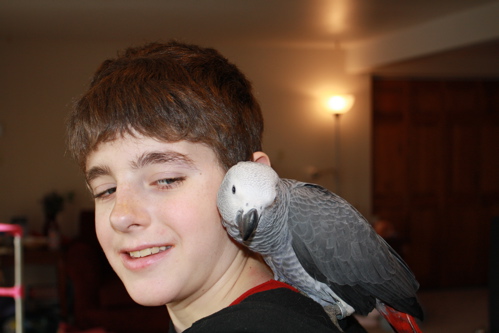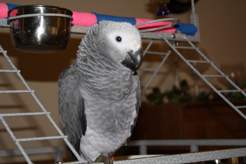 it is my pleasure to present to you Miss Bella, the newest addition to our flock. She is a darling and has us wrapped around her little talon already! We met with the breeder Saturday evening after our long drive. All of the babies were adorable, but Bella really wanted to stay on us, she was the only one who did not try to fly back to the cage. So we came back for her in the morning and the breeder offered us another bird for free, she has been having a hard time finding a home for all eight. I was really tempted to take her sister as well, but decided that since this is my first bigger bird, I decided that I was nervous enough about raising one , I probably better not try two, plus we have no room for another cage, if I decided not to house them together(I was kicking myself the whole way home, but I think I made the right choice)Anyway, she did beautifully on the trip home, she begged to come out of the cage the whole way, we let her out at every stop and she just wanted to snuggle.