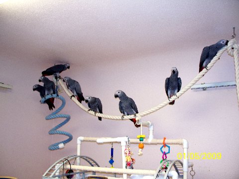 My baby comes home in 15 days!(I have a countdown on my computer screen:) I am so very excited, it has been such a long wait, first to find a breeder near us, then for a clutch, then to watch them grow up through the pictures the breeder sends! I have been waiting for over a year! The cage is all set up, my husband is making a play stand this weekend, I have read every article ever written about bringing home a baby, and pretty much everything else about owning a grey. Now all that remains if for us to drive the 7 hours and pick which of the babies we want. Now THAT will be hard, they are all so cute! I have a few questions left though: Obviously the trip home with baby will be a little long, does anyone have any recommendations on how to make this as stress free as possible?The breeder is going to give us a dog crate to bring them home in..... Also, the bird will be 4 1/2 months old and has been fully fledged and they are all confident little fliers. I have read about how clumsy they can be as babies,but is that more before they fledge? I guess what I am getting at is should I lower all the perches in the cage and have a towel on the bottom, or should a fully fledged bird be pretty steady and confident? I have finally decided on names, Kuzko if it is a boy and Belle for a girl. Ahhhhh!!!!!! How can I wait 15 whole days!