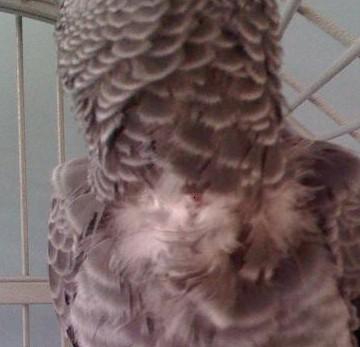 I took her to the vet yesterday and she looked at some feathers, from around here ear, under a microscope to look for mites. She didn't find any and concluded that it must be a fungal infection. She gave me a solution to rub around her ears twice a day for ten days. The vet also said that Juliet is probably molting, but is definately chewing on her feathers. She said she's had remarkable results (with feather plucking and chewing) with this herbal rememdy. She didn't have any in stock, so I will get it next week. When I get it I will let you know what its called and if I also see "remarkable" results =)
