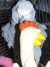 7. Oliver came with his own phone conversations-and since he's come here someimes he "talks on the phone" in my voice too. I finally got him an infants phone that he can dial and it plays songs, etc. he loves it. It's his own telephone. (Actually he has one on his sleeping cage and one on his perch in the living room). When he wants me to come and get him he'll either howl like a wolf or call out "hello, helllllllloooooooooooo?" and then he'll just come fly in to where ever I'm at. I'm at home a lot, but he has definite times in the afternoon and late morning where he wants to be left alone-and will sometimes go to his sleeping cage and shut the door. If I'm busy and want to entertain him, I just turn the TV on Reggae or Opera and he's one happy bird. He also has his own CD player with his favorite country and western tape-yeeeehaw.
