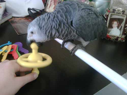 I was very happy to buy my grey 3 new additions to his cage. I bought him a perch with a twisting colorful shapes end,a bendable perch, and an acrylic toy with a bell which i can hang in the cage. After assembling everything i placed him in the cage and he was desperate to get out. at first i thought that it was because i was out for a long time and he didnt wanna go back in there and be alone so he stayed with me but when it was bedtime i put him back in the cage and again he refused and thats when i realized that he could be scared or maybe just disliking the new perch because it was the largest and most apparent. After removing it he was back to normal and went inside his cage for a good night sleep. How can i introduce it in the cage without scaring him? Thanks, Noor <br><br>Post edited by: nhrh, at: 2009/01/12 22:29