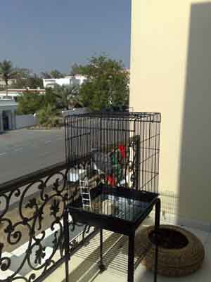 Alright so i would like to thank you for the tips and advice because now he has accepted it and its in his cage and he's loving it I let him play around it for two days and then yesterday i tried putting it in the cage and he went to it Cant wait to buy him a new bigger cage. The shop brought in some new cages and am gonna go look at them, where i live there isnt many options for cages or parrot supplies, and if i order i would pay double the price in shipping costs (for a cage). For the time being he stays in this cage shown below. He is enjoying the afternoon on the balcony<br><br>Post edited by: nhrh, at: 2009/01/16 00:00