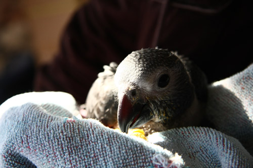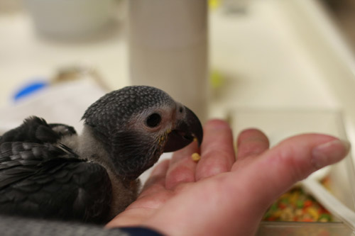 6. To start off, I'll just say that there are pictures coming! I promise! I have lots it's just life gets pretty busy now and then and I very recently had to re-install Windows on my computer....:whistle: Anyway, THE most exciting news! I was out visiting little Darwin again today and the breeder gave me great news! Darwin has been eating on his own for a week now and the breeder told me that if he stays on track, Darwin will be coming home this time next week! As you can imagine, I'm thrilled! I've been visiting him up to four times a week for the past 8 weeks since I picked him out. He's quite accustomed to me, my Mum and my boyfriend. He'll even come running to the edge of the cage when he sees me through the window! Such a good boy. He loves to be on his back, too. It's quite funny. He'll let me flip him upside down and lie in my hand. He loves playing with his feet in that position and chewing on anything he can get his little beak on. Darwin is also quite vocal and especially squaks happily when you rub his neck. He's started lying his head down in the palm of your hand so you can scratch his head. Sorry to have ranted so long, but I'm so very excited! Pictures to follow! Cheers Cassandra