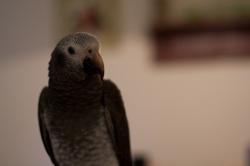 Hello! I hope everyone is doing well! I have sort of a bizarre question. Darwin's cage is in my room, and she gets put to sleep usually around 8-8:30. She always goes to sleep like an angel and I never have trouble putting her to bed. I usually go to bed around 9:30-11, depending on the day. She always wakes up when I come into the room and does a small squak, her way of saying hello. I tell her to go back to sleep and she quiets down. However, the past 3-4 days she has been making a very strange sound after this happens. I lie down to go to sleep, Darwin will be totally quiet and then about a minute later I'll hear a very faint "ticktick...tickticktick....ticktickticktick...." a minute will go by and she'll repeat the sound. It almost sounds like its her beak rubbing together or something. The first time she did it I got paranoid and turned the light on, but everything was fine..and she's been doing it a few times each night over the past few days. It's probably just me being totally paranoid but I was just wondering if anyone has ever heard their Grey do this? Thanks! (And I'm in the middle of taking new pictures of her and Luna for updates! Will be up soon!)