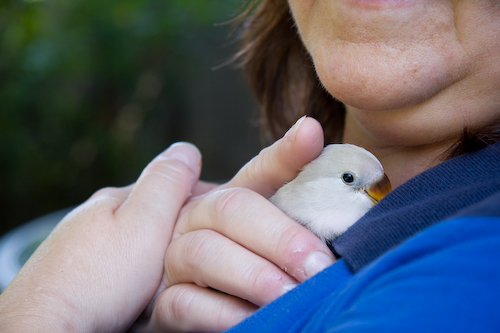 21. My mum just said she's sitting there with a smile on her face munching away I think she's stunning, in the sun she seems to glow with a pinky colour. Her head will lighten up, and fade from white to cinnamon to pink to violet on her wings and back. I hope you enjoyed her story, and I'll keep you updated as I continue handfeeding her.
