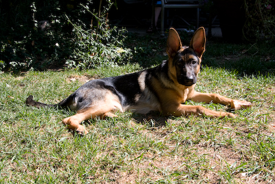 20. Well, the "pup" (doesn't look like one) is now 18 weeks old and almost 50 POUNDS!!!!! MY GOODNESS! Yep, he's huge. Yep, he's a maniac. And yes, people are afraid of him! Can you believe it!? Most people go running to see pups and people are scared! He's such a sweetie and has never been aggressive towards anyone or anything, and Sunday we start Puppy Power training! He's growing so well, shiny coat, bright hazel eyes and too much energy! He plays fetch and adores Darwin (as you've heard) and is healthy and happy. Here are some updated pictures of the giant, and one of Tango, my 12 year old Westie, because she doesn't want to feel left out
