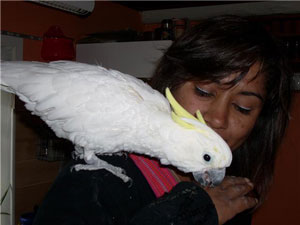 Thank for such a warm welcome. We were told that Ella was slow to wean and needed to go home so she could fledge properly as the othe birds in the aviary might bite her toes off if she tried to land on a cage there. I have orderd Scenic hand weaning pellets to start the process. Ella seems happy with her plelets (Hrrisons high potency) she will crunch one and eat what ever stays in her mouth. I have also read some terrible things about that Kytees weaning formula (Breeders choice) are you framiliar with how bad that stuff may be? She will mouth the veggies and eat just a little. The sprouts she has no interest in. Also she sleeps by putting her head staight back and closing her eyes is that normal. I thought birds put their head under a wing. As far as feeding the formula she is a champ at that, the breeder said do not feed her until she refuses as she will eat until she pukes. I am doing three feedings today against the suggestion of the breeder she seems hungery.