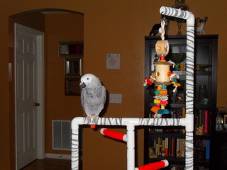 My name is Russ and my Grey is Winston I am so happy to be here. This forum is so very informative and fun. In fact my partner and I have just built a playstand that I found here. I will post pics in the appropriate thread. So what to say about myself and of course Winston.... Winston is 9months old. He is an animated little thing. Well, big thing actually. LOL. I love him so much. My partner Mark and I have six dogs and four birds in our zoo. Winston the CAG, Oz a male Eclectus, Monkey a Sun Conure and Giddeon a very moody Indian Ringneck. They all get along and antagonize each other non-stop.