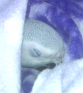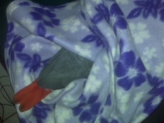 Gracie is doing well. Last Friday, she went bowling with me and a bunch of friends from work. She was a hit! She did very well. The noise did not bother her. She seemed to enjoy having lots of people come say hello to her. She is also starting to make noises other than the growl. I think she will start talking soon. She still enjoys her nightly feeding and cuddle time. Her hatch date was 4/18/09 and she is weighing from 310-325 on her daily weigh in's. Too cold to take her to breakfast today. It is only 48 degrees here in Florida this morning! BRRRRRRR Have a greyt day!