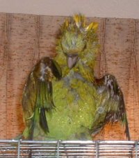 well its been almost a week since we seperated them .Shrek does not seem to be affected he is the same ole happy guy . But Pheona is starting to change Instead of sitting their being a grump and growling all day , she has began to chew on her toys and whistle a little. Funny thing , it was our male cockatiel who got her out of her shell. through the day he goes over to her side of his cage , he puts his wings up in a territorial display and dances at her, it really seems to aggravate Pheona and Fred is lucky she cant reach him. Anywho he does his display and she fluffs up and bawks at him and they climb up and down the cages doing this for a while , then he goes back to his nest box and she plays a little , squeaks and whistles , its nice to see her come alive , ( even if it is to destroy my cockatiel)Fred never bothers Shrek I guess he is not very interesting to him .It is really interesting to watch . We did clip Shreks wings Everytime we go to feed he wants to try to fly around and he is horrible at it. he is always flying into things , so we clipped him for his own safety and he has calmed down alot since then . As for Fred and Wilma they are happy little brooders right now around the first week of april we should have our first chick were excited .Hope all is well with you and your featherd babies.