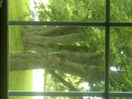 14. Hey everyone! My grey, Cookie, is a totally destructive bird, in that he plays, and he plays HARD. He ate thru the huge main perch in his cage... 3 ft long, and about 1.5 inches thick. I have huge trees in my yard, that I would love to give him branches from to play with, but I don't know what kind of trees they are!! I just took a picture out of my office window. Can some smart tree person help me? Thanks! Carol